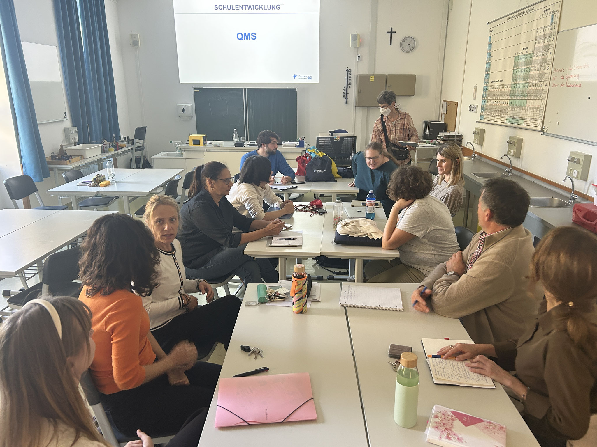 Im Rahmen der Konferenz am 8. Oktober 2025 widmete sich das QMS-Team erneut einem Arbeitsauftrag zum Thema „Nachhaltige Schulentwicklung“. In verschiedenen Gruppen wurden Ziele formuliert, Entwicklungsmöglichkeiten diskutiert und konkrete Maßnahmen zur Erreichung der QMS-Ziele festgelegt.