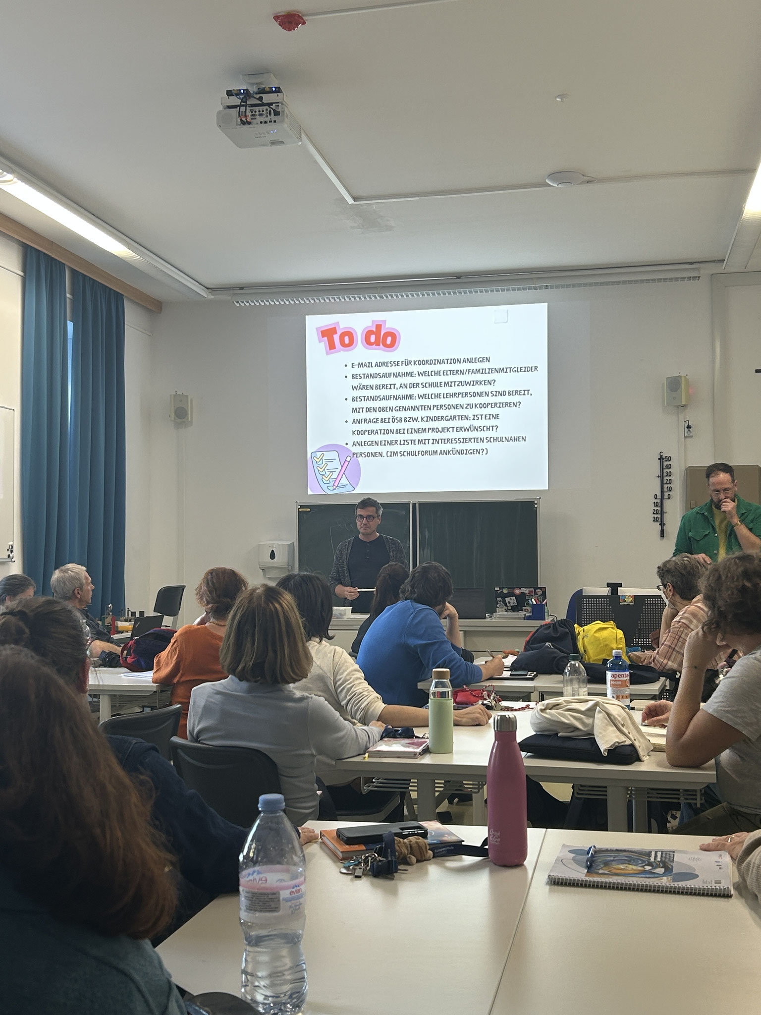 Zum Abschluss jeder Arbeitsphase präsentierten die Gruppen ihre Ergebnisse und Projekte im Schulteam. Dadurch entstanden spannende Einblicke in unterschiedliche Bereiche unsere Schulentwicklung sowie zahlreiche Impulse, die unser gemeinsames Lernen und Arbeiten stetig bereichern.